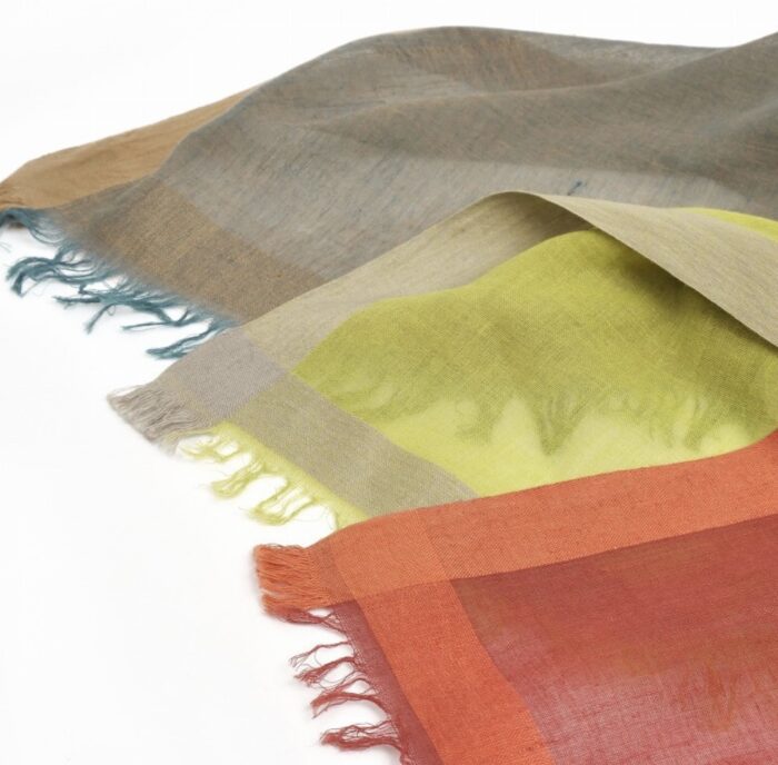 とても薄くて軽いカディは肌触りが良く、首元の冷え対策や日中の日よけに活躍しますよ。