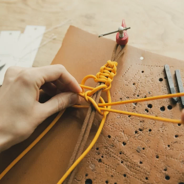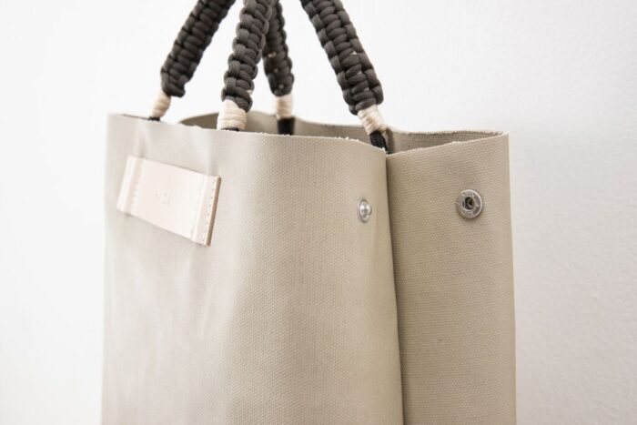 ハンドルはカナダの漁師や船乗りの使用する結び方を駆使。ハンドルの長さを自由自在に変更できるデザイン。ハンドでもショルダーでも、お好みのスタイルでお楽しみいただけます。