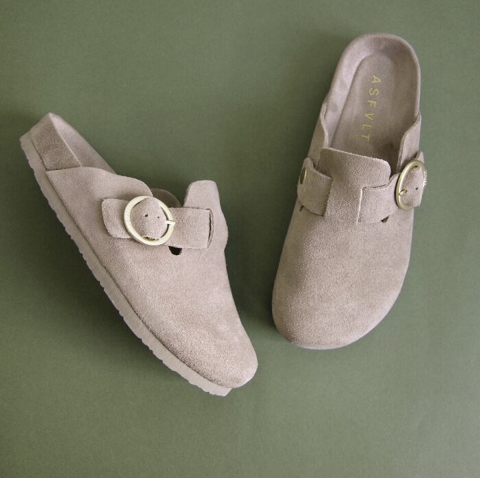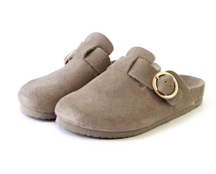 メタリックバックルが映えるクロッグシューズのご紹介です。