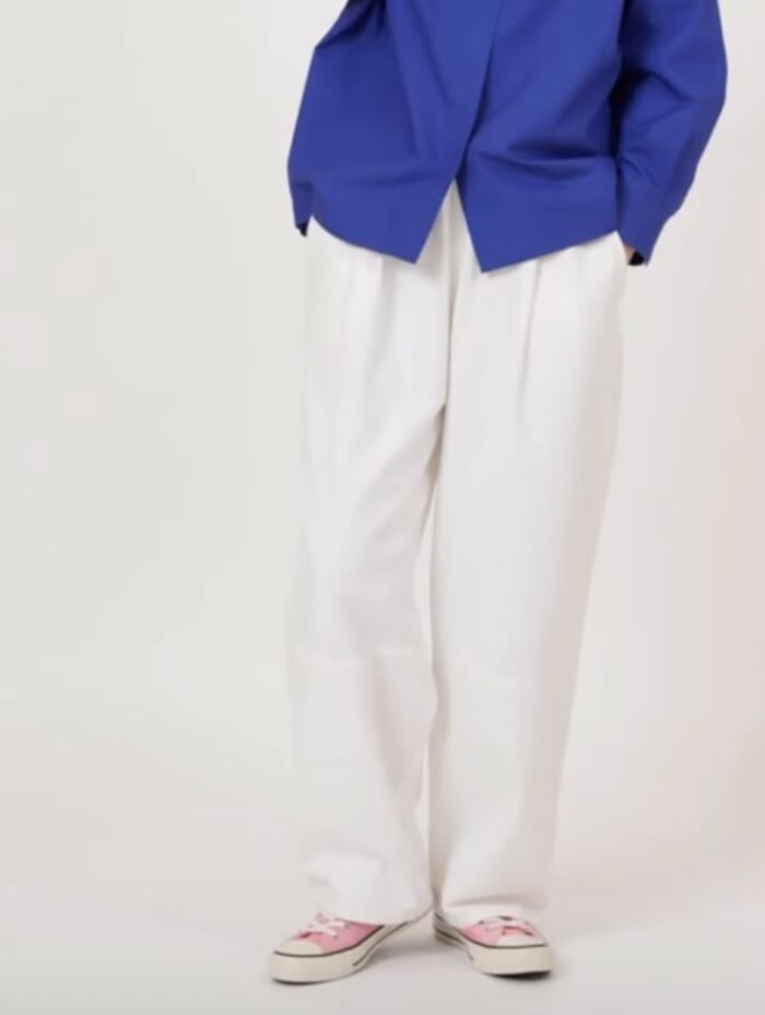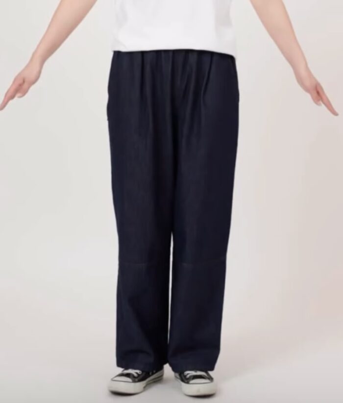 ワイドシルエットをベースに膝下に切り替えを入れ立体的に。