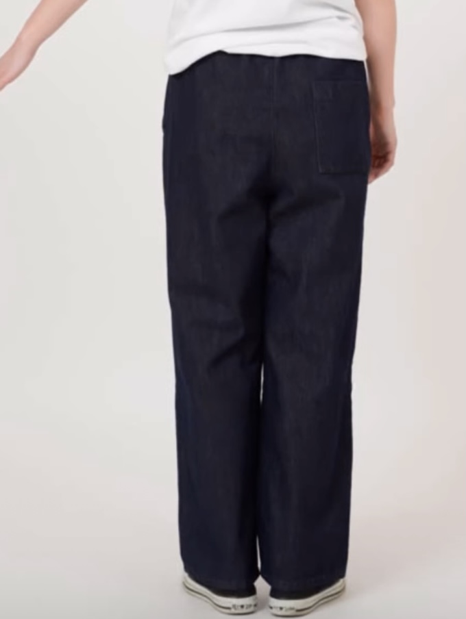 ウエスト総ゴムで楽チンなんだけれどそうは見えないdiariesのデニムパンツ。